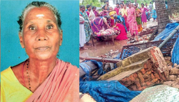 கனமழையால் வீடு இடிந்து மூதாட்டி பரிதாப பலி