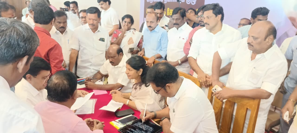 தஞ்சையில் கனிமொழி எம்.பி. தலைமையில் இன்று தஞ்சை, திருவாரூர், மயிலாடுதுறை, நாகை மாவட்ட தி.மு.க சார்பில் 2026 சட்டமன்றத் தேர்தல் அறிக்கை தயாரிக்கும் குழு கருத்து கேட்பு கூட்டம் நடைபெற்றது. கூட்டத்திற்கு தி.மு.க துணை பொதுச் செயலாளர் கனிமொழி எம்.பி. தலைமை தாங்கி அனைத்து தரப்பினரிடம் கருத்துகளை கேட்டு அறிந்து மனு வாங்கினார். பின்னர் அவர் செய்தியாளர்களுக்கு அளித்த பேட்டியில், “வருகிற சட்டமன்றத் தேர்தலை முன்னிட்டு தி.மு.க தேர்தல் அறிக்கையை உருவாக்குவதற்காக, தேர்தல் அறிக்கை குழுவை தலைவர் முதல்-அமைச்சர் அனுப்பியிருக்கிறார். அதை ஒட்டி, முதலிலே ஓசூரிலே இந்த தேர்தல் அறிக்கை குழு சென்று அங்கு இருக்கக்கூடிய அலைபேசி உற்பத்தியாளர்கள் , தொழிலாளர்கள் உள்ளிட்ட
