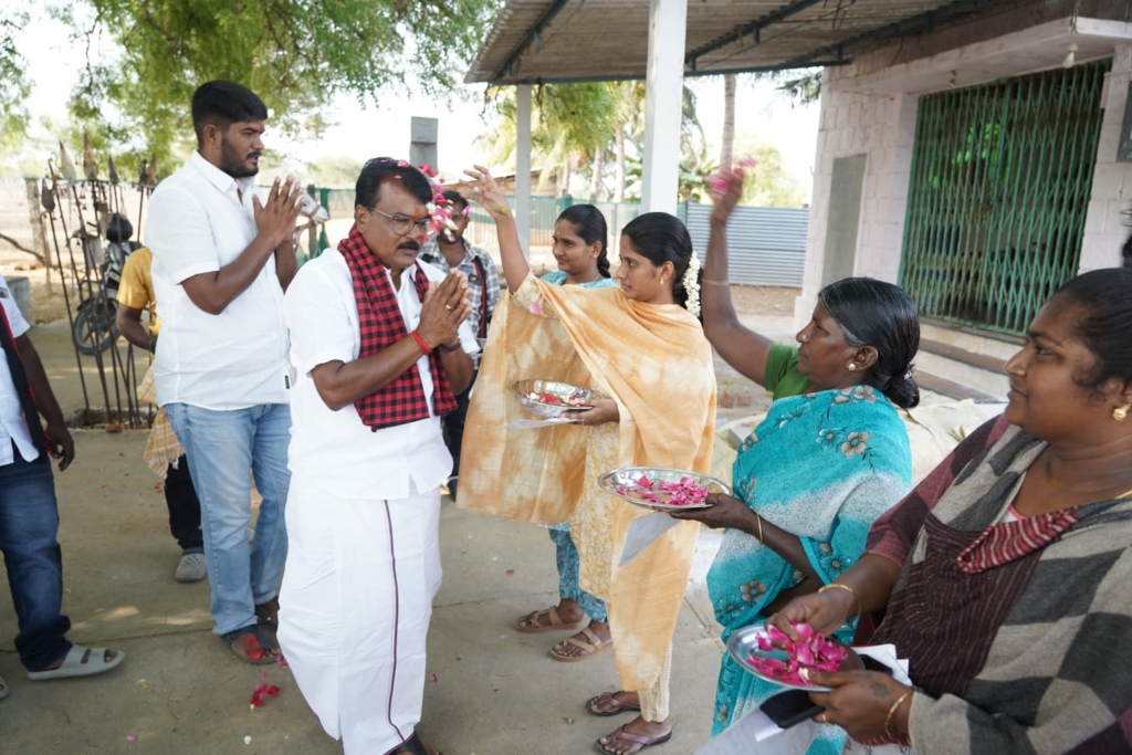 இந்த நிகழ்ச்சியில் திமுக மற்றும் கூட்டணி கட்சிகளின் நிர்வாகிகள் மாலை, சால்வை அணிவித்து வேட்பாளர் இளங்கோவை வரவேற்றனர். அப்பகுதி பொதுமக்கள் பூக்கள் தூவி, ஆரத்தி எடுத்து உற்சாக வரவேற்பு அளித்தனர்.