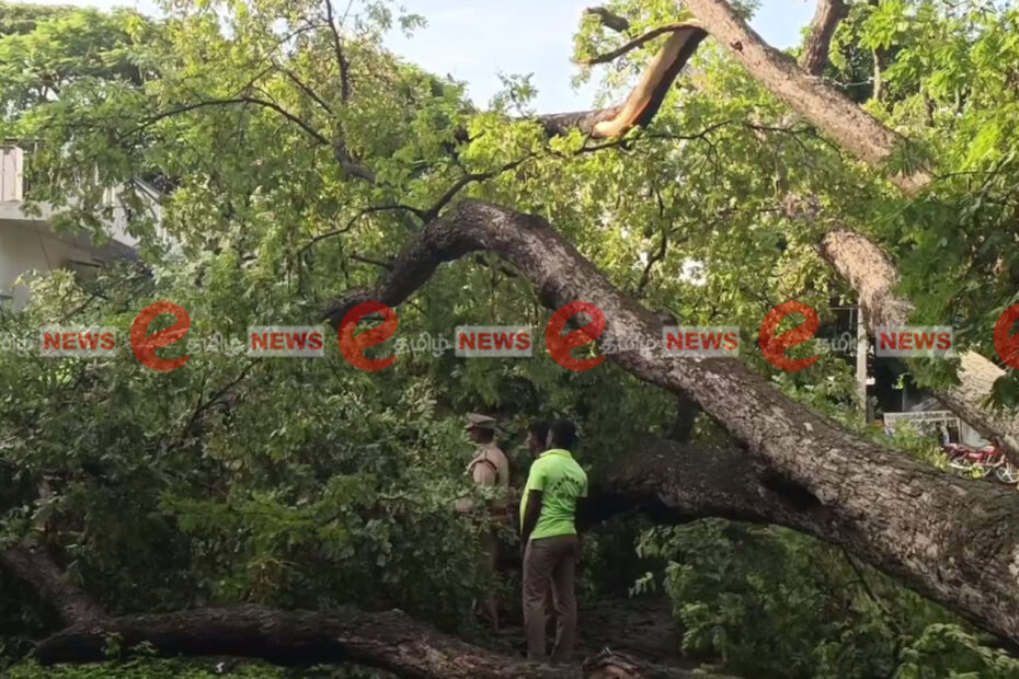 புளியமரம் சாலையில் முறிந்து விழுந்ததால் மின்சார துண்டிப்பு… பொதுமக்கள் அவதி