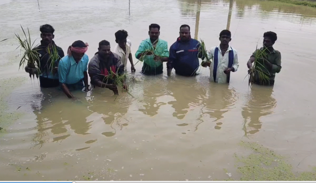 பெய்து வருவதால் இடுப்பளவு தண்ணீரில் நாற்று நடவு செய்து 15 நாட்களே ஆன இளம் சம்பா – தாளடி பயிர்கள் நீரில் மூழ்கியுள்ளன. இப்பகுதியில் வடிகால் வாய்க்கால் முறையாக தூர்வராதால் மழைநீர் வடியாமல் விளைநிலங்களில் தேங்கியிருப்பதாகவும், மழை நீர் தொடர்ந்து தேங்கி இருப்பதால் பயிர்கள் அழுகும் நிலை ஏற்பட்டுள்ளதாகவும் இதனால் ஏக்கருக்கு 25 ஆயிரம் வரை இழப்பு ஏற்பட்டுள்ளதாக விவசாயிகள் வேதனை தெரிவித்துள்ளனர்.