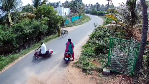 திருப்பூர் மாவட்டம், காங்கேயம் அருகே தனது இருசக்கர வாகனத்தில் விவசாயி சின்னசாமி என்பவர் சென்று கொண்டிருந்தார். அப்போது பெண் ஒருவர் இருசக்கர வாகனத்தில் திடீரென குறுக்கே வந்ததால் விவசாயி சின்னசாமி நிலை தடுமாறி கீழே விழுந்ததில் சம்பவ இடத்திலேயே உயிரிழந்தார். இந்தவிபத்து குறித்து திருப்பூர் மாவட்ட போலீசார் விசாரணை நடத்திவருகின்றனர். இந்த விபத்தின் சிசிடிவி காட்சிகள் சமூக வலைத்தளங்களில் வேகமாக பரவி வருகிறது.