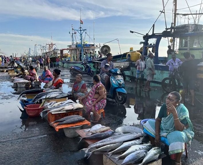 மீன்பிடி தடைக்காலம் அமலுக்கு வந்துள்ளதால் சென்னை காசிமேடு சந்தையில் மீன்கள் விலை 3 மடங்கு அதிகரித்துள்ளது. 1 கிலோ வஞ்சிரம்: ₹1,200 – ₹1,600, இறால்: ₹600, வவ்வால்: ₹1,000, சங்கரா ₹500, நெத்திலி: ₹500, கடம்பா: ₹500 என விற்பனையாகிறது. ஜூன் 14-ம் தேதி வரை ஆழ்கடலுக்கு மீனவர்கள் செல்லமாட்டார்கள் என்பதால் வரும் நாள்களில் மீன்கள் விலை மேலும் உயரும் என வியாபாரிகள் தெரிவித்துள்ளனர். உங்கள் ஊரில் விலை என்ன?