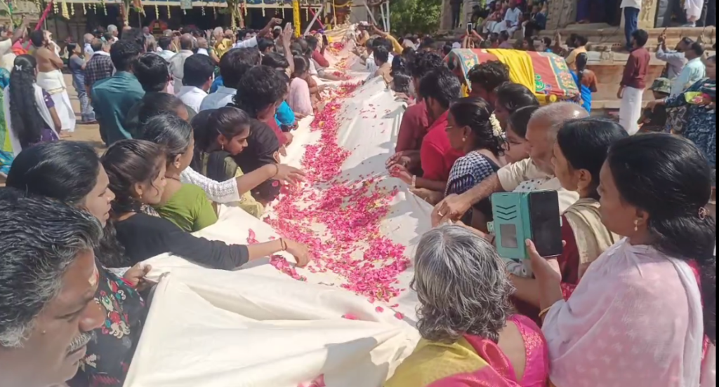 கோவில் வளாகத்தில் பல்லக்கில் எடுத்து வந்து தீபாராதனை காட்டப்பட்டது. திரளான பக்தர்கள் வழிபாடு செய்தனர்.