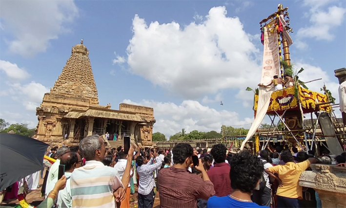 தஞ்சை பெரிய கோவில் சித்திரை திருவிழா 18 நாட்கள் நடைபெறும். அதன்படி இந்த ஆண்டு சித்திரை திருவிழாவுக்கான 18 நாட்கள் நடைபெறும் சித்திரை பெருவிழா இன்று கொடியேற்றத்துடன் தொடங்கியது. இதனை முன்னிட்டு சந்திரசேகரர் பஞ்சமூர்த்தி சுவாமிகளுடன் சிறப்பு அலங்காரத்தில் கொடிமரம் அருகே எழுந்தருளினர். தொடர்ந்து 40 அடி உயர கொடிமரத்துக்கு