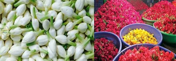 திண்டுக்கல் மலர் சந்தையில் பூக்களின் விலை கடும் வீழ்ச்சி அடைந்தது. முகூர்த்த காலத்தில் ரூ. 300 விலை போகும் சம்பங்கி 30 ரூபாயாக விலை சரிந்தது. ஆயிரம் முதல் ரூ.2,000 வரை விற்பனையான மல்லிகை கிலோ ரூ. 300ஆக விலை குறைந்தது. பட்டன் ரோஸ், முல்லைப்பூ ஆகியவை ரூ. 100ஆக விலை குறைந்தன. ஜாதிப்பூவின் விலையும் 150 வரை சரிந்ததால் விவசாயிகள் கவலை அடைந்துள்ளனர்.