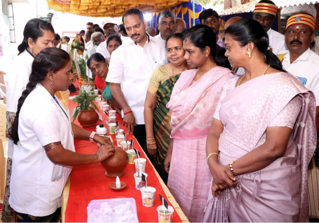 மூலப்பொருட்கள் கண்காட்சி மற்றும் பறசிகிச்சை முறை விளக்க கண்காட்சி அரங்குகளை பார்வையிட்டார். உடன் மாநகராட்சி மேயர் திலகவதிசெந்தில் , சட்டமன்ற உறுப்பினர் வை.முத்துராஜா, சித்த மருத்துவர்மரு. லூர்து மேரி, மற்றும் அரசு அலுவலர்கள் பலர் உள்ளனர்.