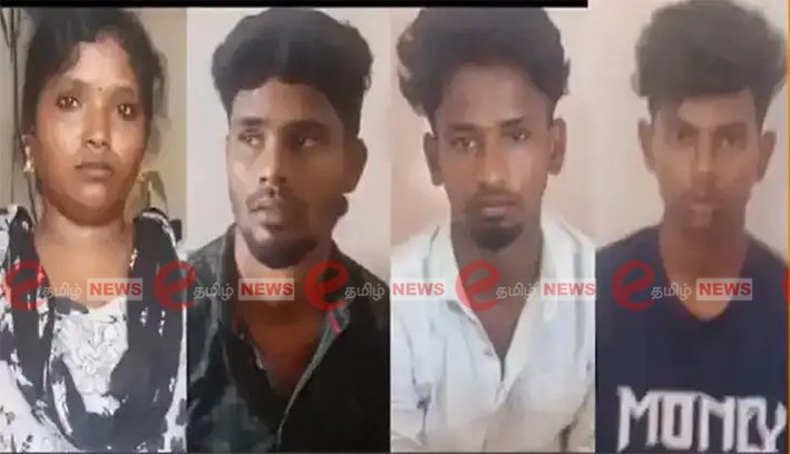 சிவகங்கை மாவட்டம், திருப்பத்தூர் விநாயகர் நகர் கீழரத வீதியைச் சேர்ந்த கதிரவன் (60) அவர்களின் மகன் தினேஷ் (34). இன்ஜினியரிங் படித்த இவர், தற்போது திருப்பத்தூர் பேருந்து நிலையத்தில் டீக்கடை நடத்தி வருகிறார். தினேஷ் ‘பிரண்டு சாட்’ செயலி மூலம் பலருடன் பழகி வந்துள்ளார். அந்த வழியில் காயத்ரி (28) என்பவருடன் பழக்கம் ஏற்பட்டது. கடந்த ஒரு மாதமாக வாட்ஸ்அப் மூலம் தொடர்ந்து தொடர்பில் இருந்துள்ளனர். இந்த நிலையில், காயத்ரி மூன்றாவது கணவர் மற்றும் அவரின் நண்பரான கார்த்தி (29), சஞ்சய் (19), சூர்யா (19) ஆகியோருடன் சேர்ந்து தினேஷை ஏமாற்றி நகை, பணம் பறிக்க திட்டமிட்டதாக கூறப்படுகிறது. கரூர் மாவட்டம் வேலாயுதம்பாளையம் பகுதியில் உள்ள தனியார் மருத்துவமனை அருகே வாடகை வீடு எடுத்து ஒரு வாரமாக தங்கி இருந்தனர்.