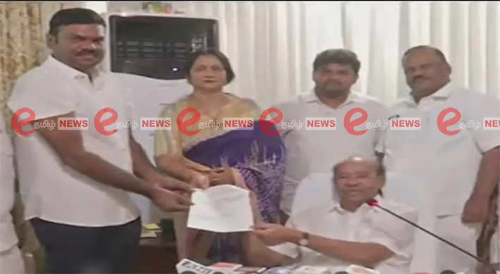 பாமகவில் ராமதாஸ்- அன்புமணி இடையே நாளுக்கு நாள் மோதல் போக்கு நீடித்து வருகிறது. இந்நிலையில், விழுப்புரம் தைலாபுரம் இல்லத்தல் பாமக நிறுவனர் ராமதாஸ் சற்றுமுன் செய்தியாளர்களை சந்தித்தார். அப்போது, ஜி.கே.மணியின் மகன் தமிழ் குமரனுக்கு மாநில இளைஞரணி தலைவர் பதவி வழங்கினார். அதற்கான நியமன உத்தரவை ராமதாஸின் மூத்த மகள் காந்திமதி தமிழ் குமரனிடம் வழங்கினார். இது கட்சியில் மேலும் பரபரப்பை ஏற்படுத்தியுள்ளது.