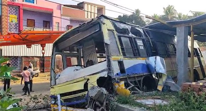 கும்பகோணம் அருகே மின்கம்பத்தில் மோதி அரசு பஸ் விபத்து