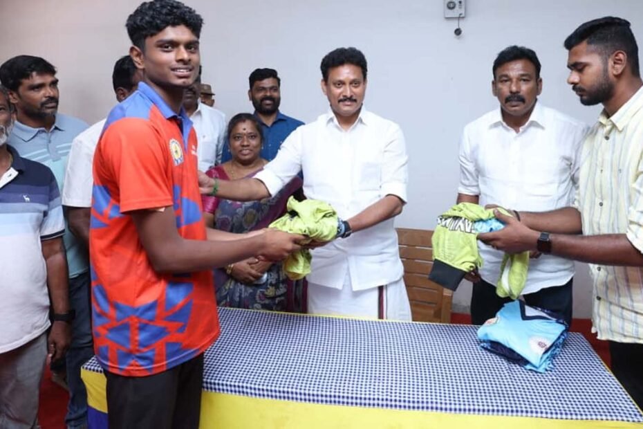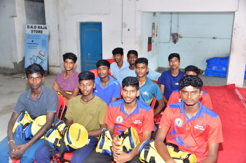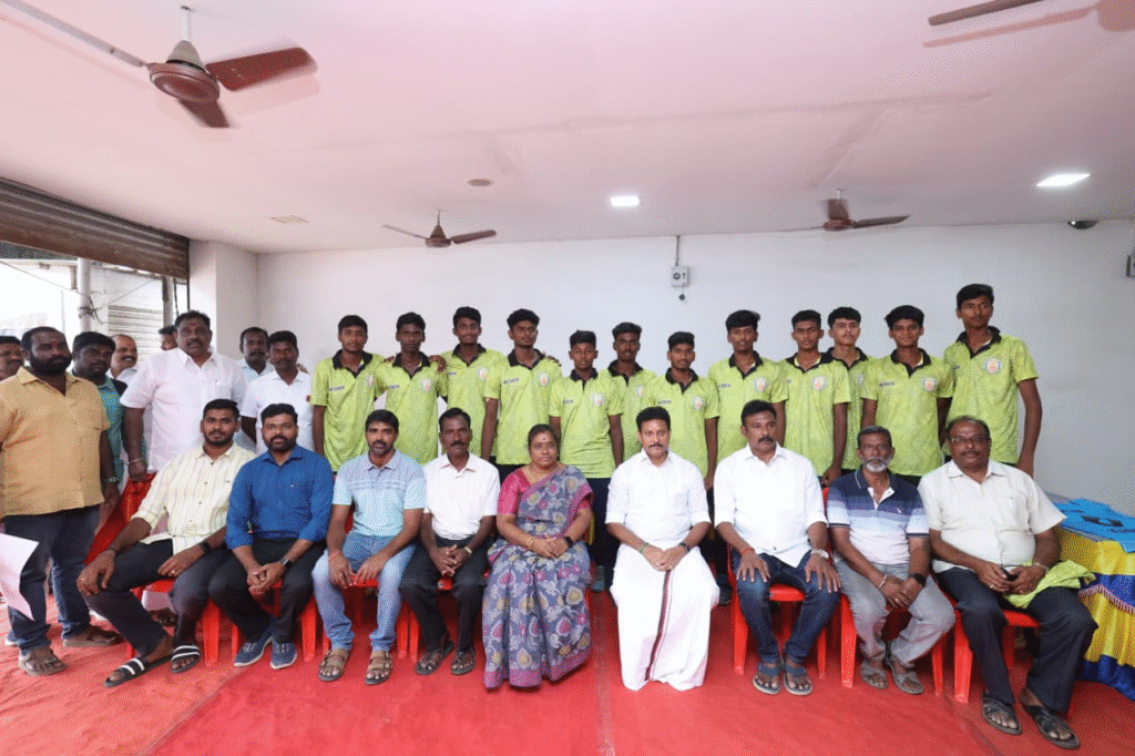 அணியினரை தமிழ்நாடு பள்ளி கல்வித்துறை அமைச்சர் மகேஷ் அன்பில் அறக்கட்டளை சார்பாக