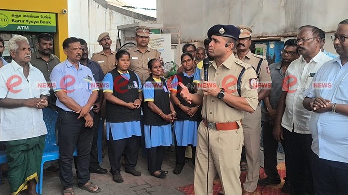 மேலும், கரூர் மாவட்டம் முழுவதும் உள்ள அனைத்து பெட்ரோல் பங்குகளின் முன்பாகவும் இதுபோன்ற விழிப்புணர்வு பதாகைகள் வைக்கப்பட்டுள்ளதாகவும், அனைத்து இடங்களிலும் சிசிடிவி கேமராக்கள் வைத்து கண்காணிக்க உள்ளதாக கூறினர்.