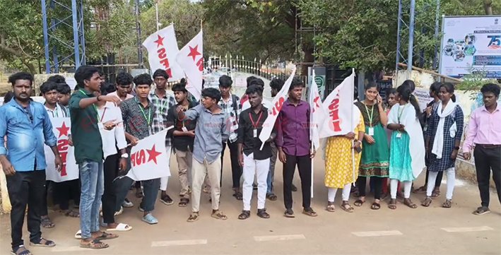 அரசு கல்லூரி கௌரவ விரிவுரையாளர்கள் போராட்டத்திற்கு ஆதரவு தெரிவித்து இந்திய மாணவர் சங்கத்தினர் சரபோஜி கல்லூரி முன்பு ஆர்ப்பாட்டம்.