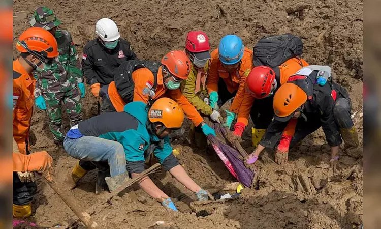 இந்தோனேசியாவின் மேற்கு ஜாவா மாகாணத்தில் உள்ள புரங்ரங் மலைப்பகுதியை ஒட்டிய பசிர் லங்கு கிராமத்தில் கடந்த சனிக்கிழமை பயங்கர நிலச்சரிவு ஏற்பட்டது. இந்த இயற்கை பேரிடரில் அந்த கிராமத்தில் இருந்த 34 வீடுகள் மண்ணோடு மண்ணாகப் புதைந்தன. இதில் வீடுகளில் இருந்த 97 பேர் மண்ணுக்குள் சிக்கிக் கொண்டனர்.
