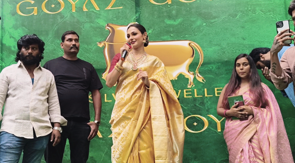 என்றும் கூறினார்.தற்போது தங்கம் விலையைப் பார்த்தாலே பயமாக இருக்கிறது என கூறிய அவர்,நவம்பர் 21ஆம் தேதி தான் நடித்த மாஸ்க் திரைப்படம் வெளியாக உள்ளது படம் நன்றாக வந்துள்ளது ஜாலியான படம் என்பதால் அனைவரும் திரையரங்கில் வந்து படத்தை பாருங்கள் என வலியுறுத்தினார்.தவெக தலைவர் நடிகர் விஜய் குறித்த கேள்விக்கு நடிகர் விஜய் வந்தாலும் மகிழ்ச்சி தான் என்றும் அவர் தளபதி தானே என்றும் பதிலளித்தார்.தொடர்ந்து கடைக்கு வெளியே ரசிகர்களை சந்தித்த பேசிய ஆண்ட்ரியா பின்னர் ரசிகர்களின் கோரிக்கைக்கு இணங்க பாடல் பாடி அனைவரையும் மகிழ்வித்தார்..