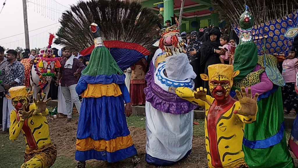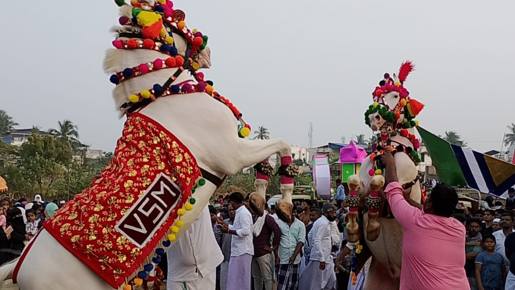 பட்டுக்கோட்டை அருகே உள்ள அதிராம்பட்டினத்தில் கந்தூரி விழாவை முன்னிட்டு கொடி ஊர்வலம் நடைபெற்றது திரளான பக்தர்கள் பங்கேற்பு பட்டுக்கோட்டை அருகே உள்ள அதிராம்பட்டினத்தில் பிரசித்தி பெற்ற காட்டுப்பள்ளி வாசல் காரணக்கடல் கருணை மகான் ஹஜ்ரத் சம்சுல் உழும் செய்து நசுருதீன் வலியுல்லாஹ் அவர்களின் தர்கா 5 38 ஆம் ஆண்டு மாபெரும் பெரிய கந்தூரி விழாவை முன்னிட்டு தர்காவிலிருந்து பல்லக்கு ஊர்வலமாக புறப்பட்டது அதில் மயிலாட்டம் புலியாட்டம் வேடம் அணிந்து ஊர்வலத்தில் வந்தனர் அதோடு நாட்டிய குதிரைகள் நாட்டியத்துடன் ஆடி