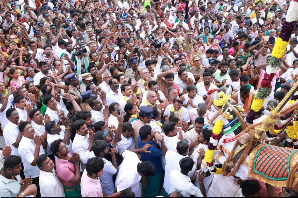 கரூர் வெண்ணைமலை பாலசுப்பிரமணிய சுவாமி கோவிலில் தைப்பூச தேர் திருவிழா வெகு விமரிசையாக நடைபெற்றது. அரோகரா கோஷம் முழங்க, முன்னாள் அமைச்சரும் எம்எல்ஏ செந்தில் பாலாஜி மற்றும் திரளான பக்தர்கள் தேரை வடம் பிடித்து இழுத்தனர்.