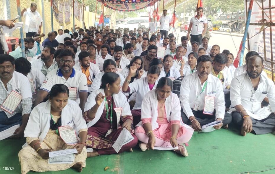 108 ஆம்புலன்ஸ் ஊழியர்களின் வருடாந்திர ஊதிய உயர்வு 16%ல் இருந்து 10% ஆக குறைக்கப்பட்டுள்ளதை மீண்டும் 16% உயர்த்த வேண்டும், 108 ஆம்புலன்ஸ் சேவையை அரசாங்கமே ஏற்று நடத்தி அதில் பணிபுரியும் தொழிலாளர்களை நிரந்தர படுத்த வேண்டும், தாமதமாக வழங்கப்படும் ஊதியங்களை குறிப்பிட்ட தேதியில் சரியாக வழங்க வேண்டும், பணியில் இருக்கும் பொழுது உயிரிழந்தால் 50 லட்சம் நிதி உதவி வழங்க வேண்டும் அதேசமயம் நிர்வாக காப்பீட்டுத் தொகையாக 20 லட்சம் வழங்க வேண்டும், 8 மணி நேர வேலை செய்யும் வகையில் நடவடிக்கை எடுக்க வேண்டும், தீபாவளி ஊக்க தொகையாக 20 ஆயிரம் ரூபாய் வழங்க வேண்டும் என பல்வேறு கோரிக்கைகளை வலியுறுத்தி கோவையில் 108 ஆம்புலன்ஸ் ஊழியர்கள் டாடாபாத் பகுதியில் உண்ணாவிரத போராட்டம் மேற்கொண்டு வருகின்றனர்.