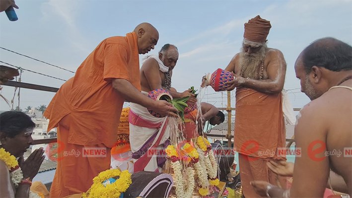புனித நீர் கலசங்கள் கோவிலைச் சுற்றி ஊர்வலமாக எடுத்து வரப்பட்டு. கோவில் கோபுர கலசங்களுக்கு புனித நீர் ஊற்றப்பட்டு திருநெறிய தீந்தமிழ் திருக்குட நன்னீராட்டு பெருவிழா நடைபெற்றது.