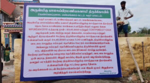 பலகைகள் வைக்கப்பட்டது. அந்த அறிவிப்பு பலகையில் மேற்படி திருக்கோயிலுக்கு சொந்தமான நிலங்களில் உள்ளவர்கள் வரும் 24.10.2025 மாலை 5.00 மணிக்குள். திருக்கோயிலுக்கு வாடகை செலுத்த சம்மதம் தெரிவிக்க கேட்டுக் கொள்ளப்படுகிறார்கள்.