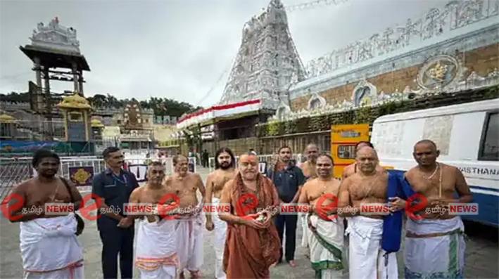 ஸ்ரீ காஞ்சி காமகோடி பீடாதிபதி ஜகத்குரு பூஜ்யஸ்ரீ சங்கர விஜயேந்திர சரஸ்வதி சங்கராச்சாரியார் சுவாமிகள் நேற்று திருமலை ஸ்ரீ வெங்கடேஸ்வர ஸ்வாமியை தரிசனம் செய்தார், அவர் தீபாவளி சிறப்பு சேவையில் பங்கேற்றார். கோவில் நிர்வாகம் சார்பில் சுவாமிகளுக்கு சிறப்பு மரியாதை செய்யப்பட்டது.