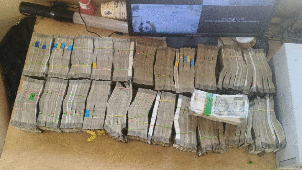ரூபாய் நோட்டுகள் இருப்பது தெரியவந்தது. உடனடியாக இருசக்கர வாகனத்தையும், அதை ஓட்டி வந்த கேரளா மாநிலம் பெருந்தல்மன்னா, மலப்புரத்தை சேர்ந்த ஷபீக் என்பவரையும் சோதனை சாவடிக்கு கொண்டு வந்து விசாரணை மேற்கொண்டனர். இரு சக்கர வாகனத்தில் இருக்கையின் கீழ் பகுதி மற்றும் பெட்ரோல் டேங்கில் ரகசிய அறை அமைத்து அதில் 56 லட்சத்து 50 ஆயிரம் ஹவாலா பணம் பதுக்கி வைக்கப்பட்டுள்ளது தெரியவந்தது. பணத்திற்கு உரிய ஆவணங்கள் எதுவும் இல்லாத நிலையில், போலீசார் விசாரணையில் அது ஹாவாலா பணம் என்பது தெரியவந்தது. இதனையடுத்து பறிமுதல் செய்யப்பட்ட 56 லட்சத்து 50 ஆயிரம் பணத்தையும், பணத்தை கடத்தி சென்ற கேரளாவை சேர்ந்த ஷபீக் என்பவரையும் வருமானவரிதுறை அதிகாரிகளிடம் போலீசார் ஒப்படைத்தனர்.