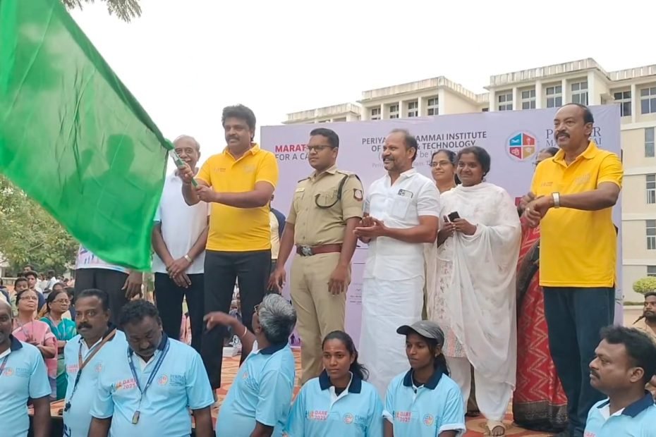 பல்கலைக்கழக வளாகத்தில் இருந்து துவங்கிய பேரணியை மேயர் சண் ராமநாதன், துணை மேயர். டாக்டர். அஞ்சுகம் பூபதி, வல்லம் நகர காவல் துணை கண்காணிப்பாளர் கணேஷ் குமார் ஆகியோர் கொடியசைத்து துவக்கி வைத்தார்.