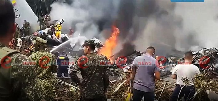 கொலம்பியாவில் 125 பேருடன் சென்ற ராணுவ விமானம் விழுந்து நொறுங்கியதில் 34 பேர் உயிரிழந்தனர். விமானம் புறப்பட்ட சில நிமிடங்களிலேயே கீழே விழுந்து நொறுங்கியதில் பலர் படுகாயமடைந்தனர். இச்சம்பவம் குறித்து தகவல் அறிந்து வந்த போலீசார்கள் சம்பவ இடத்தில் சோதனை மேற்கொண்டு வருகின்றனர். மேலும் விசாரணை செய்து வருகின்றனர். பெரும் பரபரப்பு நிலவி வருகிறது.