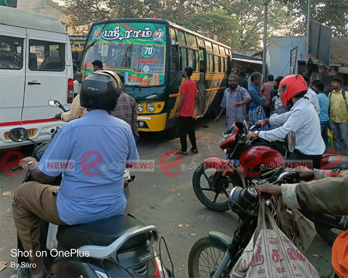 வேகமாகச் சென்ற பேருந்து, பின்னால் நிறுத்தி வைக்கப்பட்டு இருந்த இரண்டு இருசக்கர வாகனங்கள் அருகில் இருந்த ஒரு பெட்டிக் கடையில் மோதி நின்றது. திடீரென பேருந்து கடைக்குள் மோதியதை கண்டு அதிர்ச்சி அடைந்த பொதுமக்கள், சிதறி ஓடினர். நல்லவேளையாக அந்தச் நேரத்தில் கடையிலும், இருசக்கர வாகனங்கள் அருகிலும் யாரும் இல்லாததால் உயிரிழப்பு தவிர்க்கப்பட்டது.