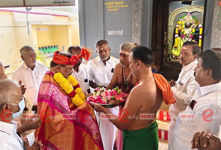 புதுக்கோட்டை மாவட்டம், திருமயம் சட்டமன்ற தொகுதி சுந்தரசோழபுரம் அருள்மிகு ஸ்ரீ வீரம்மாகாளி அம்மன் திருகோவிலில் தனது சொந்த நிதியில் கட்டப்பட்ட முன்மண்டபம் பேவர் பிளாக் தளம் மற்றும் மேற்கூறையினை திறந்து வைக்க வந்த இயற்கை வளங்கள் துறை அமைச்சர்