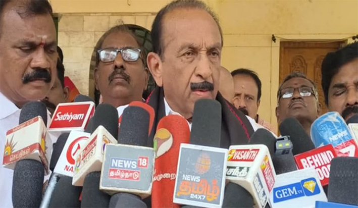 தூத்துக்குடி மாவட்டம், கோவில்பட்டியில் மதிமுக பொதுச்செயலாளர் வைகோ செய்தியாளர்களிடம் கூறியதாவது; இந்திய இறையாண்மையை அடகு வைப்பது போல, அமெரிக்க ஏகாதிபத்தியத்துக்கு கொத்தடிமையாக ஆக்கிவிட்டார் மோடி. இந்த குற்றச்சாட்டை மக்களவையில் பதிவு செய்த எதிர்க்கட்சி தலைவர் ராகுல் காந்தி கூறிய குற்றச்சாட்டை நான் அப்படியே வழிமொழிகிறேன். திராவிட இயக்கத்தை பாதுகாக்க, பாஜக பின்புல முயற்சியுடன் இந்துத்துவ, சனாதான சக்திகள் தமிழகத்தில் நுழைவதை வீழ்த்துவதற்கும் பெரியார், அண்ணா, கருணாநிதி ஆகியோர் வளர்த்த சமூக நீதியை நிலைநாட்டவும்தான் கடந்த 8 ஆண்டிற்கு முன் திமுக உடன் மதிமுக கூட்டணி அமைத்தது.