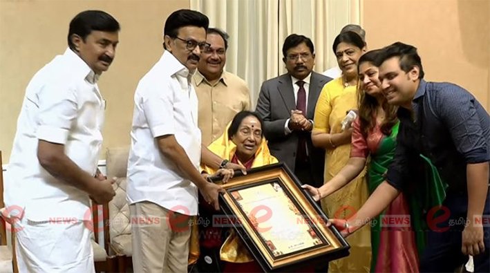 பழம்பெரும் நடிகை எம்.என்.ராஜம், முத்த பழம் பெரும் திரைப்பட இயக்குனர் எஸ்.பி.முத்துராமன் ஆகியோருக்கு கலைஞர் கலைத்துறை வித்தகர் விருதுகள் வழங்கப்பட்டது. இந்த நிகழ்ச்சியில் அவர்களது குடும்பத்தினர் மற்றும் தமிழ்நாடு அரசின் தமிழ் வளர்ச்சித்துறை அமைச்சர் மு.பெ.சாமிநாதன் உள்ளிட்டோர் கலந்துகொண்டனர்.