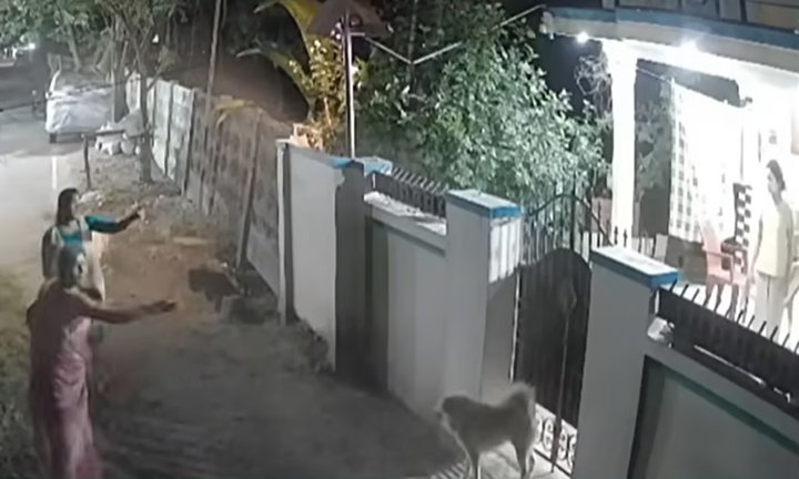 இதையடுத்து பவிதாவும், அவரது தாயும் தாங்களாகவே சுதாரித்து அங்கிருந்து நகர்ந்து சென்றனர். இருப்பினும் அந்த நாய் அவர்களை விடாமல் துரத்தியதால், பவிதா ஒரு கட்டையை எடுத்து நாயை அடித்து விரட்டினார். இந்த சம்பவம் முழுவதும் அங்கிருந்த சி.சி.டி.வி. கேமராவில் பதிவாகியுள்ளது.