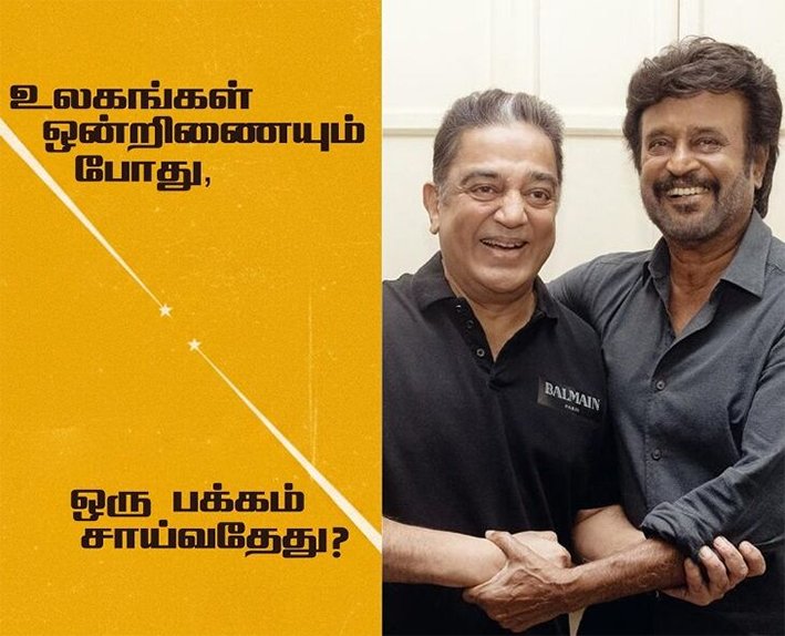 46 ஆண்டுகளுக்கு பிறகு கமல்ஹாசன், ரஜினிகாந்த் இணைந்து நடிக்கும் புதிய படத்தின் அப்டேட் இன்று மாலை 7:12 மணிக்கு வெளியாகிறது. நெல்சன் இப்படத்தை இயக்குவது உறுதியாகியுள்ள நிலையில், கடந்த வாரம் சென்னையில் புரொமோ ஷூட் நடைபெற்றுள்ளது. இதையடுத்து இரு நட்சத்திரங்கள் இணைவது போன்ற போஸ்டரை ரெட்ஜெயண்ட் நிறுவனம் பகிர்ந்துள்ளது. இப்படத்திற்கு அனிருத் இசையமைக்க உள்ளதாகவும் கூறப்படுகிறது.