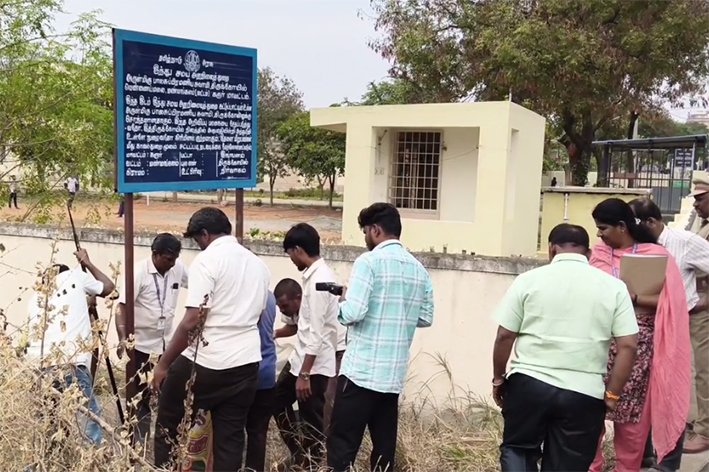 வெண்ணமலை பாலசுப்ரமணிய சுவாமி கோவிலுக்கு சொந்தமான நிலம் விவகாரம்: போலீசார் பாதுகாப்புடன் அதிகாரிகள் காலி இடத்திற்கு அறிவிப்பு பலகை வைத்து, இரண்டு வீட்டின் உரிமையாளர்கள் வாடகைதாரராக மாறுவதற்கு அனுமதி கடிதம் வழங்கியுள்ளனர்.