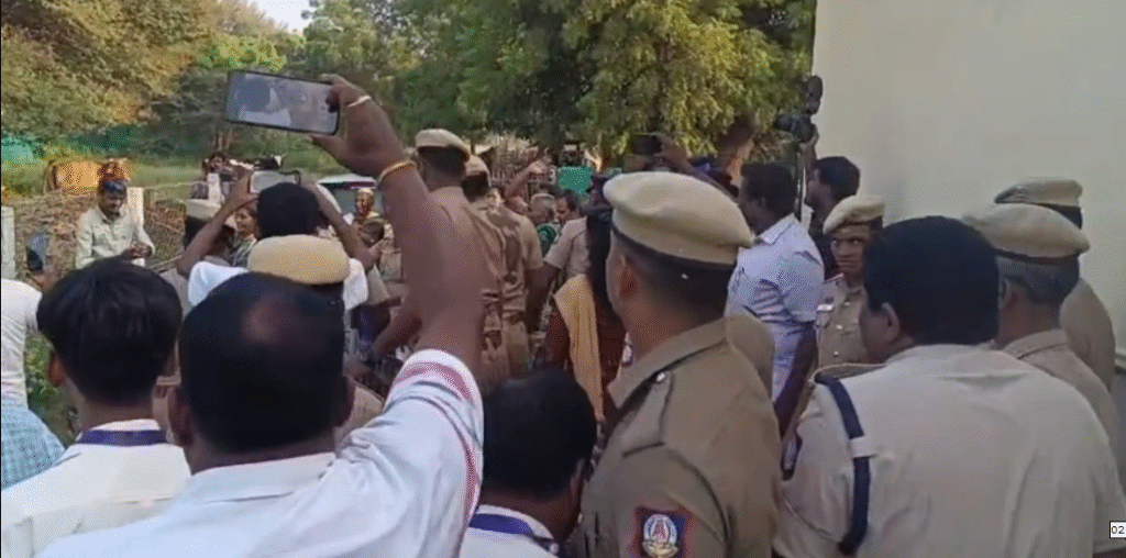 இன்று கண்ணம்மாள் என்பவர் வீட்டிற்கு சீல் வைக்க சென்ற இந்து சமய அறநிலை துறை அதிகாரிகள் மற்றும் காவல்துறையை முற்றுகையிட்டு அப்பகுதி மக்கள் போராட்டத்தில் ஈடுபட்டனர். அப்போது ஒரே குடும்பத்தைச் சேர்ந்தவர்கள் மண்ணெண்ணெய் ஊற்றி தீக்குளிக்க முயன்றதால் பரபரப்பு ஏற்பட்டது. பாதுகாப்பு பணியில் இருந்த போலீசார் தடுத்து நிறுத்தி அவர்களை அழைத்துச் சென்றனர்.