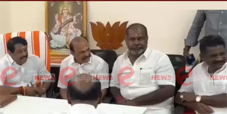 அதிமுக முன்னாள் அமைச்சர்களோடு பாஜக மாநில தலைவர் நயினார் நாகேந்திரன் நெல்லையில் ஆலோசனை மேற்கொண்டார். பசும்பொன்னில் முத்துராமலிங்க தேவர் நினைவிடத்திற்கு நேற்று மரியாதை செலுத்துவதற்காக டிடிவி தினகரன், ஓபிஎஸ், செங்கோட்டையன் ஆகிய மூவரும் ஒன்றாக சேர்ந்து ஒரே காரில் வந்து மரியாதை செலுத்தி விட்டு சென்றனர். இந்த நிகழ்ச்சி அரசியல் வட்டாரத்தில் பரபரப்பாக பேசப்பட்டிருந்தது. இதை அடுத்து இன்று நெல்லை வண்ணாரப்பேட்டை பகுதியில் உள்ள பாஜக மாவட்ட அலுவலகத்தில் பாஜக மாநில தலைவர் நயினார் நாகேந்திரன் சர்தார் வல்லபாய் பட்டேல் பிறந்தநாளை முன்னிட்டு மரியாதை செலுத்தி கொண்டிருந்தார். அந்த நேரத்தில் திடீரென அதிமுக முன்னாள் அமைச்சர்கள் ஆர்பி உதயகுமார், கடம்பூர் ராஜு இருவரும் அலுவலகத்திற்கு வந்து அவருடன் சேர்ந்து சர்தார் வல்லபாய் பட்டேல் உருவப்படத்திற்கு மரியாதை செலுத்தினர். இதை எடுத்து பாஜக மாநில தலைவர் மற்றும் அதிமுக முன்னாள் அமைச்சர்கள் கடம்பூர் ராஜு, ஆர் பி உதயகுமார் ஆகிய அனைவரும் சேர்ந்து பாஜக மாவட்ட அலுவலகத்தில் அரை மணி நேரத்திற்கு மேலாக ஆலோசனை செய்தனர்.