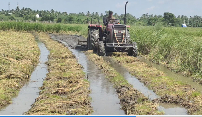 மூன்றரை ஏக்கர் குறுவை நீரில் மூழ்கி அழுகி முளைக்கத் தொடங்கியதால் டிராக்டர் ஓட்டி விவசாய நிலத்தை அளித்த பெண் விவசாயி – தஞ்சை மாவட்டம் திருப்பந்துருத்தி கிராமத்தைச் சேர்ந்த விஜி என்ற பெண் விவசாயி 4 ஏக்கரில் குத்தகைக்கு எடுத்து குறுவை சாகுபடி செய்த நிலையில் கனமழையில் நீரில் மூழ்கி சேதமாகியது –