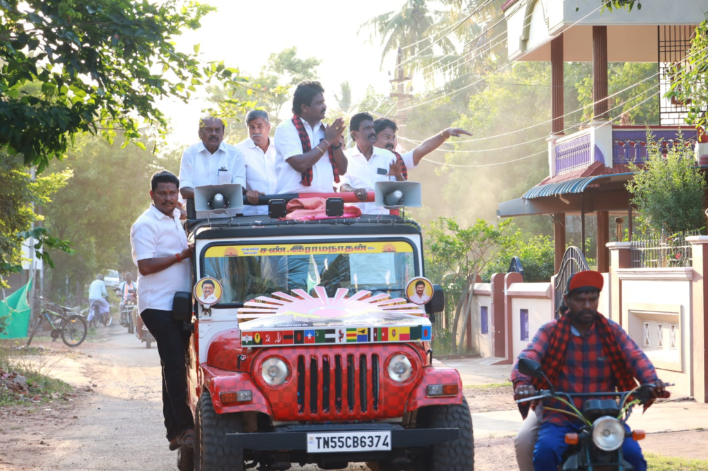 அண்ணா நகர், பர்மா காலனி, விளார் ரோடு பகுதிகளில் திறந்த ஜீப்பில் சென்று உதயசூரியன் சின்னத்திற்கு வாக்கு கேட்டு பிரச்சாரம் செய்தார். வேட்பாளருடன் சட்டமன்ற உறுப்பினர் டி.கே.ஜி.நீலமேகம், மாவட்டத் துணைச் செயலாளர் கனகவல்லி பாலாஜி, டாக்டர் ஸ்ரீராம் சுப்பையா, மண்டல குழு தலைவர் ரம்யா சரவணன், மாமன்ற உறுப்பினர் உஷா மற்றும் கூட்டணி கட்சியை