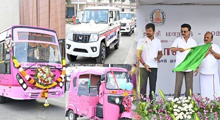 உலக மகளிர் உச்சி மாநாடு தொடக்க விழாவில், தமிழ்நாடு முதலமைச்சர் அவர்கள், மகளிர் விடியல் பயணம் மேற்கொள்ளும் வகையில் 5 வழித்தடங்களில் ஒவ்வொரு வழித்தடத்திலும் 2 பேருந்துகள் என மொத்தம் பத்து Pink பேருந்துகள், மகளிர் பாதுகாப்பிற்காக மகளிர் காவலர்களுக்கு வாகனங்கள், மகளிருக்கு Pink ஆட்டோ போன்றவற்றை வழங்கி, அவற்றின் சேவையை கொடியசைத்து தொடங்கி வைத்தார்.