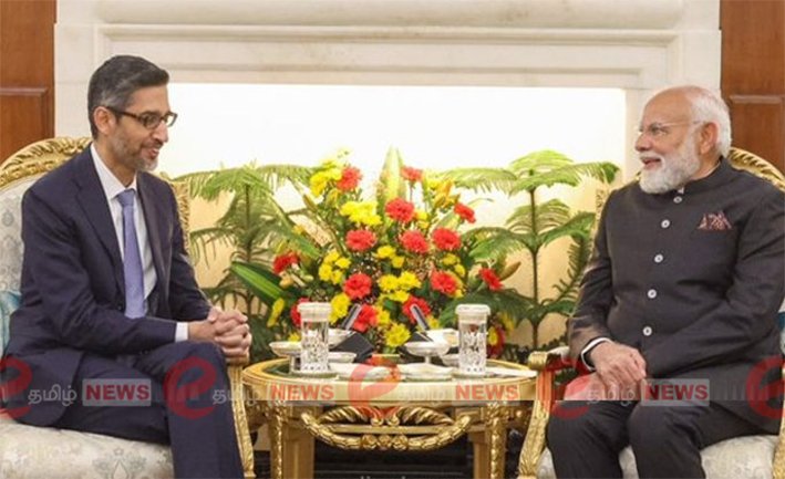 சுந்தர் பிச்சையுடன் விவாதித்ததாக பிரதமர் மோடி பதிவுby EditorFebruary 18, 2026February 18, 2026தமிழகம் டில்லியில் ஏ.ஐ. உச்சி மாநாட்டில் பிரதமர் மோடியை கூகுள் நிறுவன சி.இ.ஓ. சுந்தர் பிச்சை சந்தித்தார். இந்தியாவின் செயற்கை நுண்ணறிவு துறையின் முன்னேற்றம் குறித்து விவாதித்ததாக பிரதமர் மோடி தனது சமூக வலைதள பக்கத்தில் பதிவிட்டுள்ளார். Tags:சுந்தர் பிச்சைதமிழகம்பதிவுபிரதமர் மோடிவிவாதம்