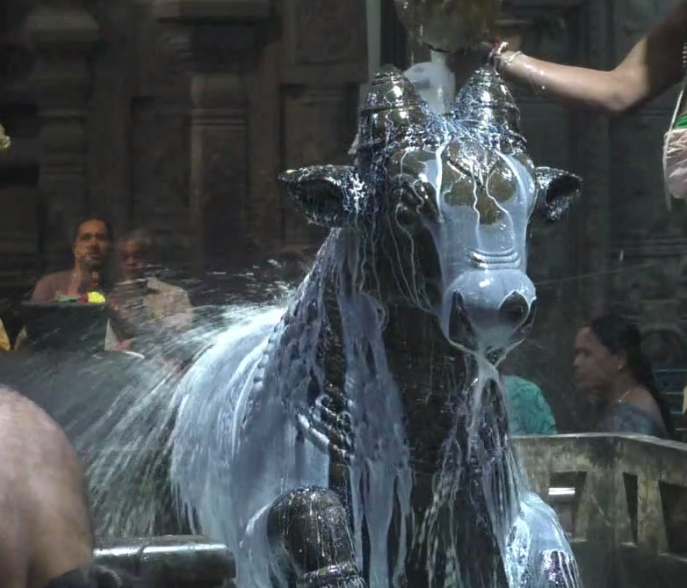 பிறகு நந்தி பகவானுக்கு தூப தீபங்கள் காட்டப்பட்டு, நெய்வேத்தியம் சமர்ப்பிக்கப்பட்டு, பஞ்ச கற்பூர