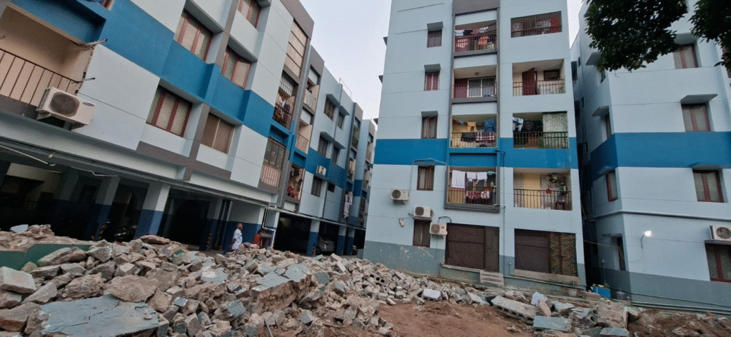 பலத்த சேதங்கள் ஏற்பட்டுள்ளதாக குடியிருப்புவாசிகள் குற்றச்சாட்டை முன்வைத்துள்ளனர்.