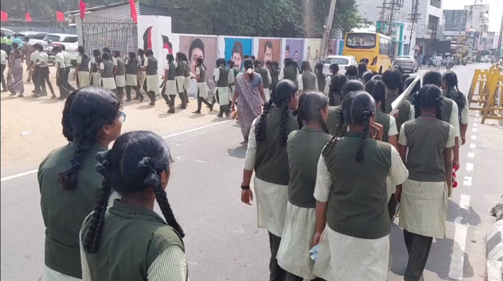 முக்கிய பகுதிகளான ஜவகர் பஜார், பழைய பேருந்து நிலைய ரவுண்டானா வழியாக மீண்டும் திருவள்ளுவர் மைதானத்திற்கு வந்தனர். சுமார் மூன்று கிலோமீட்டர் இந்த பேரணி நடைபெற்றது.