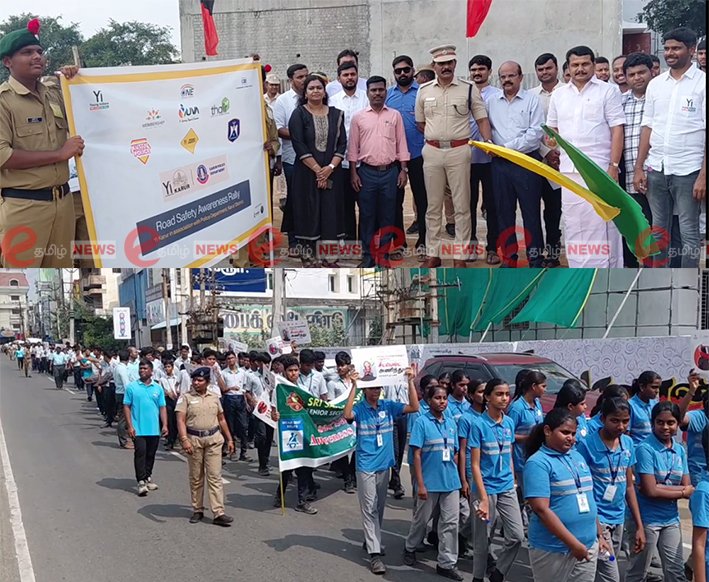 சாலை பாதுகாப்பு மாதத்தை முன்னிட்டு கரூர் மாவட்டத்தில் விபத்துகளைக் குறைக்கும் நோக்கில் விழிப்புணர்வு பேரணி நடைபெற்றது. திருவள்ளுவர் மைதானத்தில் தொடங்கிய இந்தப் பேரணியை முன்னாள் அமைச்சரும் தற்போதைய எம்.எல்.ஏ-வுமான செந்தில் பாலாஜி அவர்கள் முன்னிலையில் மாவட்ட ஆட்சியர் மற்றும் காவல் கண்காணிப்பாளர் ஆகியோர் கலந்து கொண்டு கொடி அசைத்து துவக்கி வைத்தனர்.
