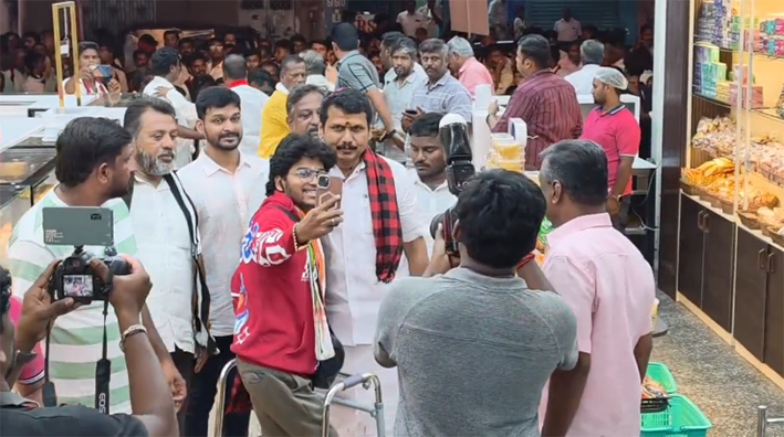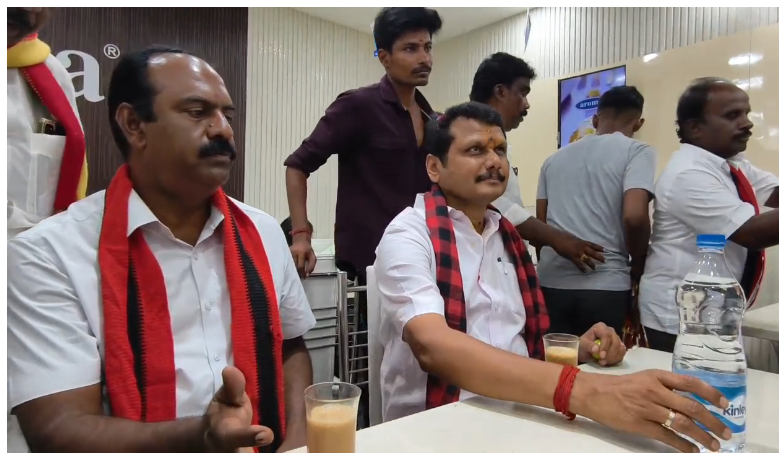 உங்களுடைய கோரிக்கைகளை உடனடியாக நிறைவேற்றித் தரப்படும் என்றார். பிறகு கருப்ப கவுண்டர் வீதியில் உள்ள அரோமா பேக்கரியில் டீ குடித்து பொதுமக்களிடம் வாக்கு சேகரித்தார்.