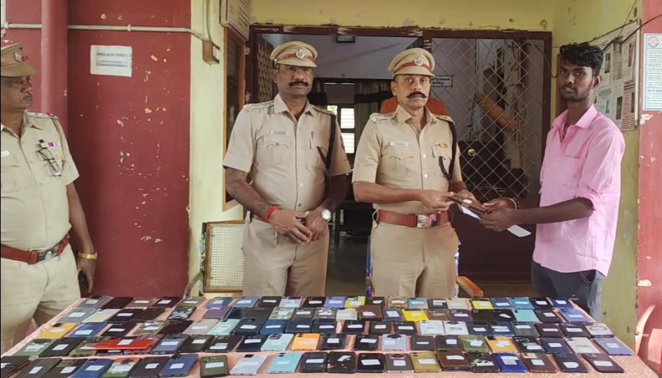 சுமார் 10 லட்சம் ரூபாய் மதிப்புள்ள 100 செல்போன்களை மீட்ட காவல்துறையினர் உரிய