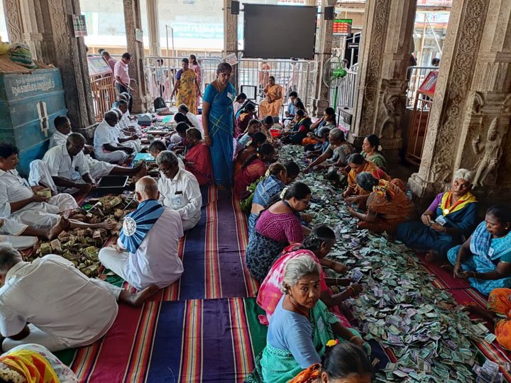 உலகப் புகழ்பெற்ற ஸ்ரீரங்கம் அருள்மிகு அரங்கநாதசுவாமி திருக்கோயிலில் இன்று (ஏப்ரல் 28, 2026) மாதாந்திர உண்டியல்கள் திறக்கப்பட்டு, பக்தர்கள் செலுத்திய காணிக்கைகள் எண்ணப்பட்டன. மாதாந்திர உண்டியல்கள் திறக்கப்பட்டு பக்தர்களின் காணிக்கைகள் கணக்கிடப்பட்டத்தில் ரூபாய் 69,93,601/-,தங்கம் 78.900 கிராம் , வெள்ளி 840.200 கிராம், மற்றும் 283 வெளிநாட்டு ரூபாய் தாள்கள் எண்ணிக்கைகள் கிடைக்கப்பெற்றன.