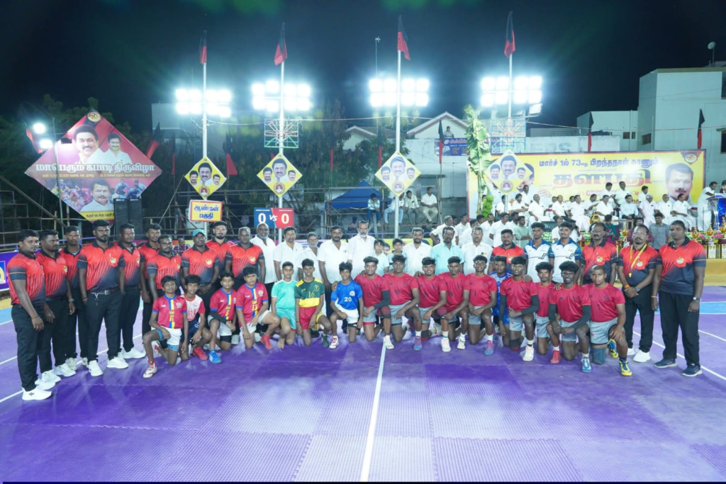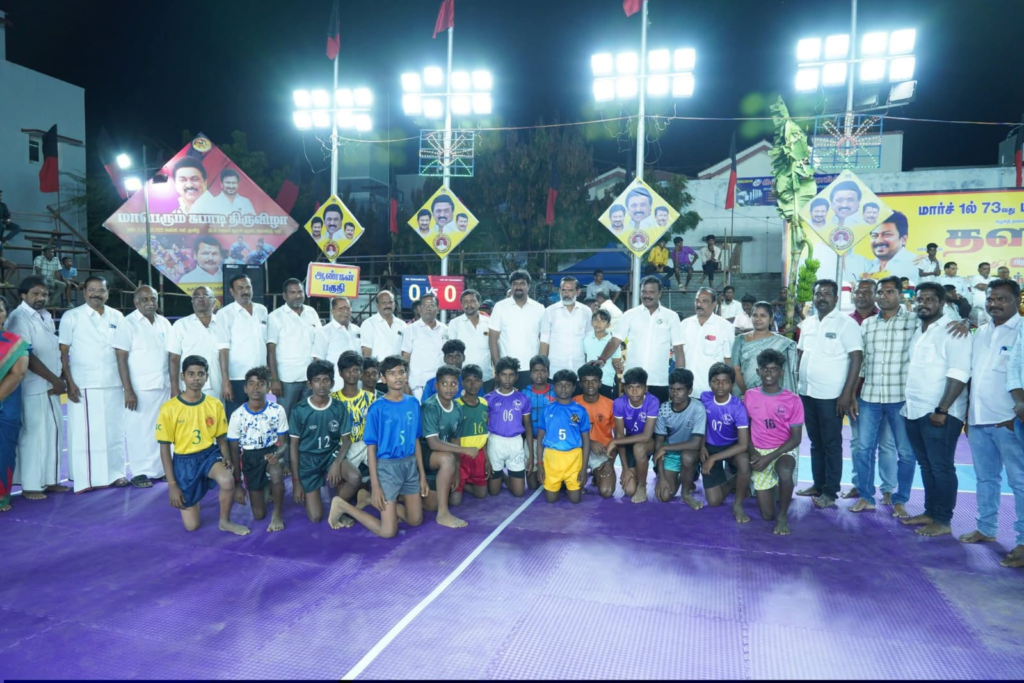கரூரில் திமுக சார்பில் தமிழக முதல்வர் பிறந்த நாள் விழாவை முன்னிட்டு மாநில அளவில் பெண்களுக்கும, மாவட்ட அளவிலான ஆண்களுக்கும் மாபெரும் கபடி போட்டி.