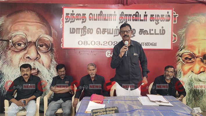 கோவை காந்திபுரம் பகுதியில் உள்ள பெரியார் படிப்பகத்தில் தந்தை பெரியார் திராவிடர் கழகத்தின் மாநில செயற்குழு கூட்டம் நடைபெற்றது. அதன் பொதுச்செயலாளர் கு. ராமகிருட்டிணன் தலைமையில் நடைபெற்ற இந்த கூட்டத்தில் தமிழகம் முழுவதும் உள்ள பல்வேறு மாவட்டங்களை சேர்ந்த மாவட்ட நிர்வாகிகள், மாநில நிர்வாகிகள் கலந்து கொண்டு கட்சியின் செயல்பாடுகள் குறித்தும் மேம்படுத்துவது குறித்தும் கருத்துக்களை பகிர்ந்து கொண்டனர்.முன்னதாக இந்திய கம்யூனிஸ்ட் கட்சியின் மூத்த தலைவர் நல்லகண்ணு மறைவிற்கும், கோவையில் முளைச்சாவு அடைந்து உடல் உறுப்பு தானம் செய்த சிறுமி வெண்பாவிற்கும் இரங்கல் தெரிவிக்கப்பட்டது. தொடர்ந்து 2026 சட்டமன்றத் தேர்தலில் திமுக தலைமையிலான மதச்சார்பற்ற முற்போக்கு கூட்டணியை ஆதரிப்பது, தென் மாவட்டங்களில் சாதி வெறியை தடுப்பதற்கு நடவடிக்கை எடுப்பது, வந்தே மாதரம் பாடலை முழுமையாக பாடுவது என்ற உத்தரவை திரும்ப பெறுவது, தமிழ்நாடு அரசு பள்ளிகளில் சாதி, மதத்தை மையமாக கொண்டு நடைபெறும் நிகழ்ச்சிகளுக்கு தடை விதிப்பதை வரவேற்பது, தமிழ்நாட்டின் பாடத்திட்டத்தில் ஆரம்ப பள்ளி முதல் பல்கலைக்கழகம் வரை சமூகநீதி, சமத்துவ வரலாற்றை பாடங்களாக சேர்ப்பது, கோவையில் பெரியார் அறிவுலகம் அமைத்திட்ட முதல்வர் மு.க. ஸ்டாலினுக்கும், தமிழ்நாடு அரசுக்கும் நன்றி தெரிவித்தல், சாதி பெயரில் இயங்கும் திருமண தகவல் மையங்களை தடை செய்ய வேண்டும், மே மாதத்தில் தமிழ்நாட்டின் பெரியாரியல் பயிற்சி முகாம் நடத்துவது ஆகிய 9 தீர்மானங்கள் நிறைவேற்றப்பட்டன.